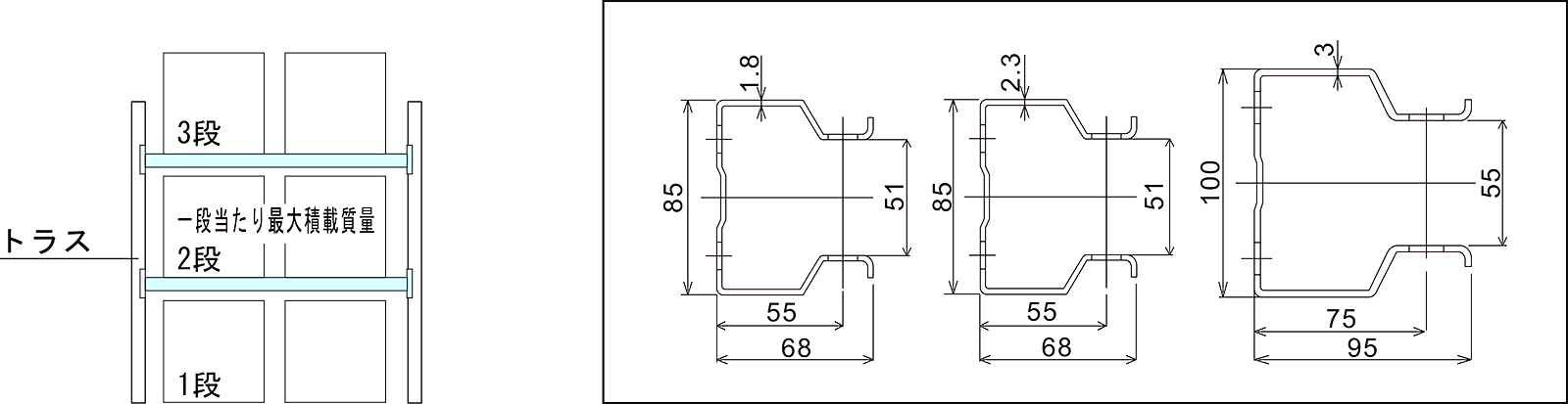 | · Es gibt drei Arten dieses schweren Racks: l, m, h