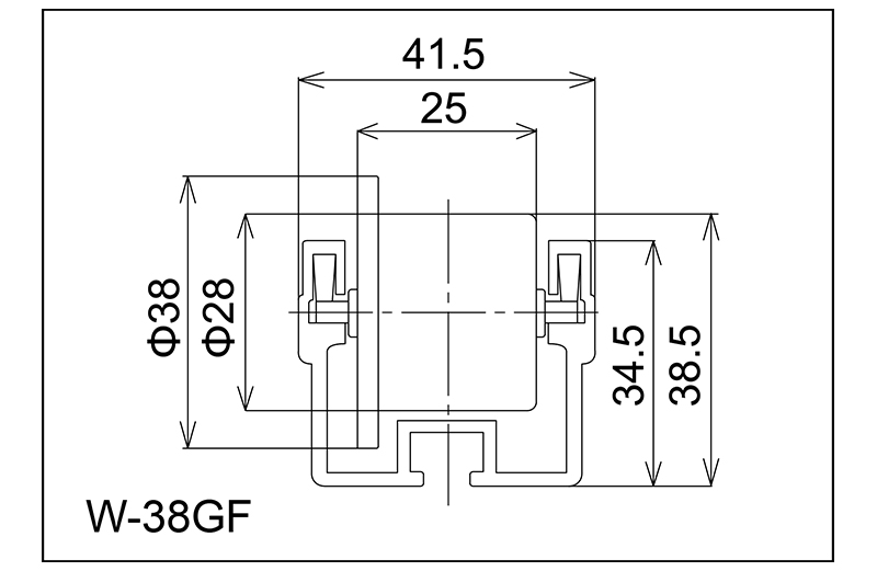 | W-38GF | 38 × 25 × 3 | 3 × 36,5 l | 34,5 × 41,5 | 43.5 | 1000 ~ 3000 | 45 | 5 | ABS |