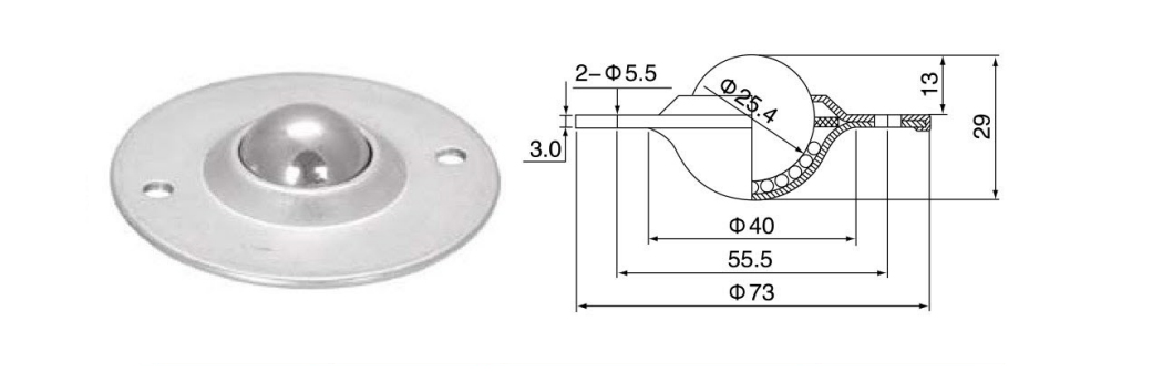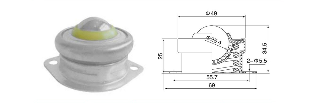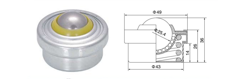 Die universelle Kugel wird auch als universelle Förderkugel, Universalkugel, Stahlkugel, Bullaugenlager usw. bezeichnet. Es hat die Leistung der Rollflexibilität und kann die Arbeitsplatte, die Materialbox und andere Objekte sehr flexibel verschieben, sein Aussehen reduziert die Arbeitsintensität des Personals stark, die für statische und dynamische Übertragungssysteme geeignet sind, wie alle Arten von universellen Ball für Elektronik, Hardware, Maschinen, Chemikalie, Wald, Bergbau, Supermarke, Rubber und andere Industrie. Es wird häufig in Übertragungssystemen, Fütterungssystemen, Verarbeitungssystemen, Verarbeitungsmaschinen und Verpackungsmaschinen -Hilfsgeräten verwendet.